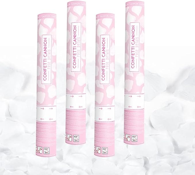 Canon à Confettis Pétale couleur Blanc 40 cm - Lot de 4 lanceurs à confettis à tenir en main, pour Anniversaire, Mariage - Portée 10 Mètres, Prise en Main Facile - SPARKLERS CLUB®