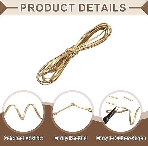 sourcing map Lot de 2 paquets de cordons plats en cuir, 5 mm, pour travaux manuels, dorés