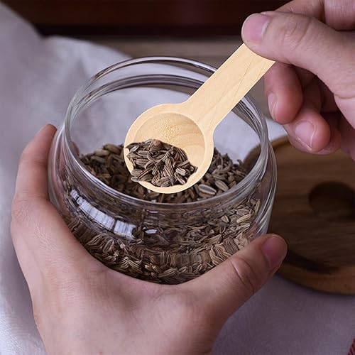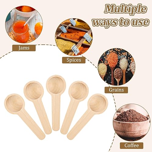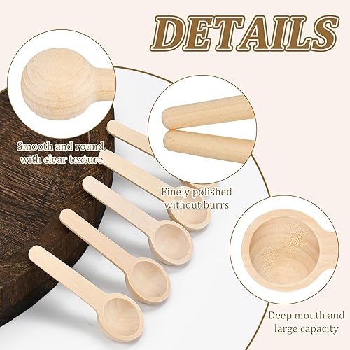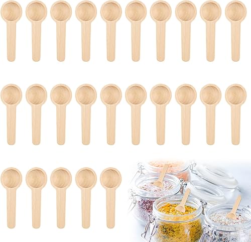 DECARETA 25 PCS Petite Cuillère Ronde en Bois pour Sel, Épices, Cuisine, Confiture et Sucre - Mini Cuillère à Épices