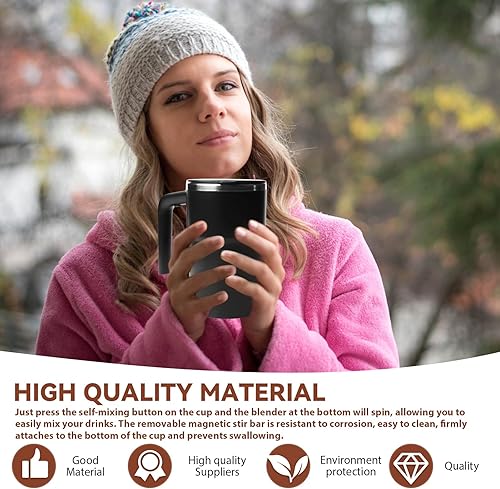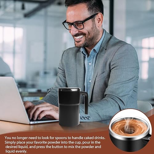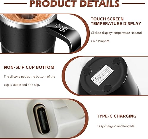 Tasse à café électrique à mélangeur automatique - 380 ml - Avec anse - Avec affichage de la température - En acier inoxydable 304 - Magnétique - Pour café, protéine et poudre