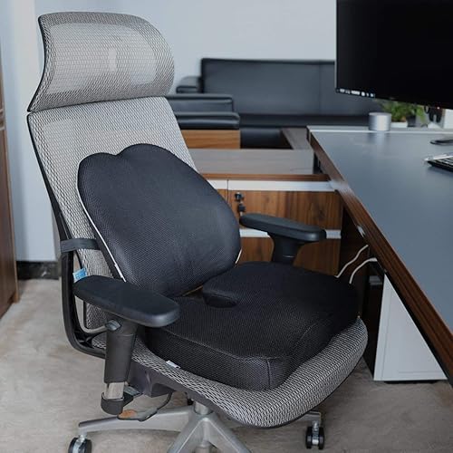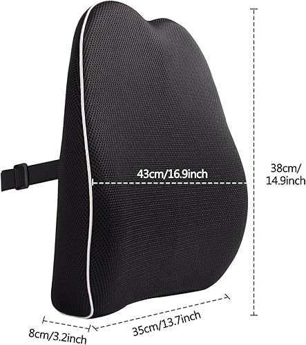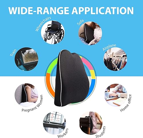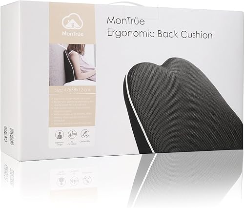 MonTrüe Coussin Lombaire Ergonomique en Mousse à Mémoire, Oreiller De Soutien du dos, Conception orthopédique pour le soulagement de la douleur au bas du dos pour maison, bureau, voyage, Noir