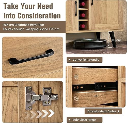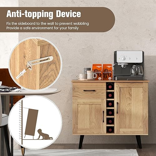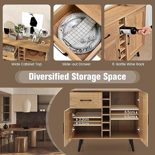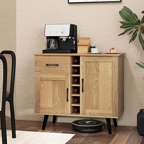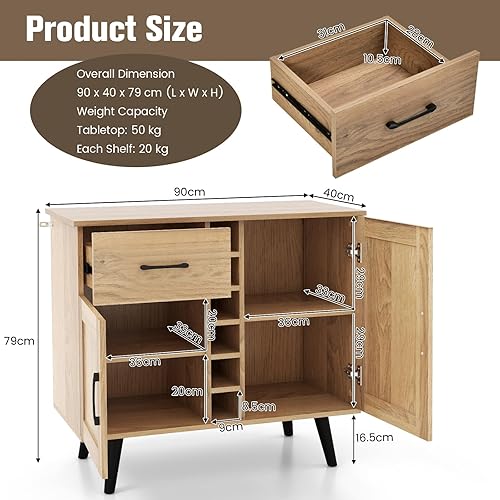 KOMFOTTEU Buffet Cuisine Industrielle, avec Porte-Bouteilles, Meuble de Rangement, 2 Armoires à Portes & 1 Tiroir, Armoire de Salle à Manger, Style Naturel, 90 x 40 x 79 cm
