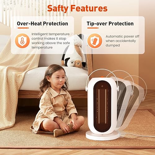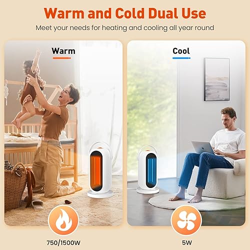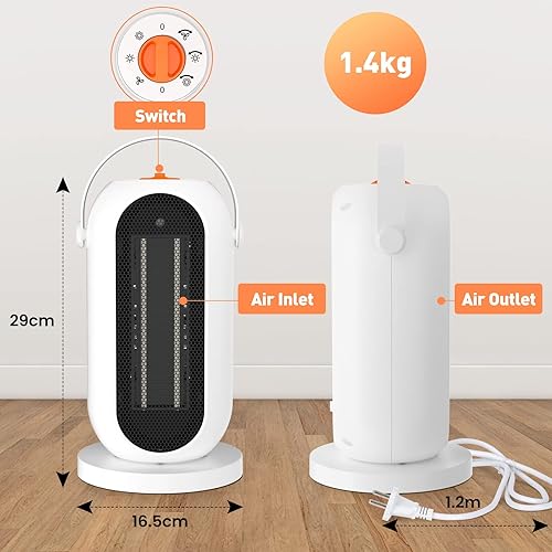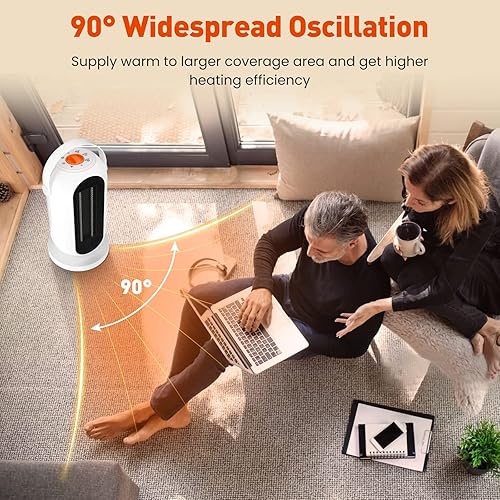 Chauffage Soufflant, Radiateur Soufflant Électrique PTC 750/1500W, Oscillation à 90°, Protection Contre Surchauffe & Anti-Basculement, 2 Modes de Chauffage + Ventilateur, Salle de Bain Maison Bureau
