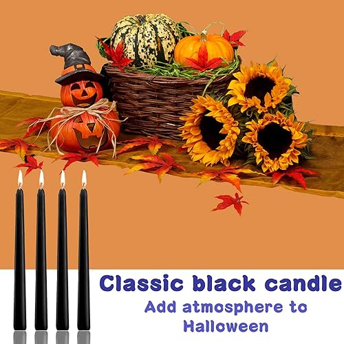 Tonsooze Bougies Coniques Paquet de 14 Bougies Grand Dripless Bougie, Chandelles Unscented Paraffine avec du Coton Wicks pour bougeoir, Cire, Hauteur 25 cm, Noir