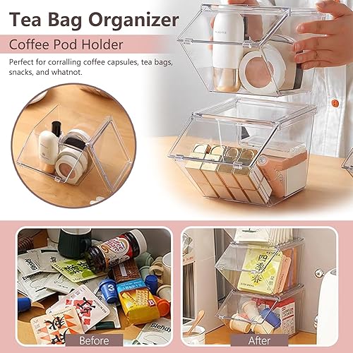 Roninkier Lot de 4 supports pour dosettes de café, sachets de thé, grande capacité, accessoires empilables pour comptoir