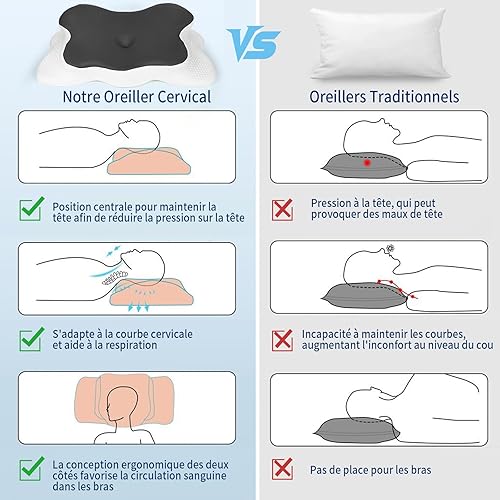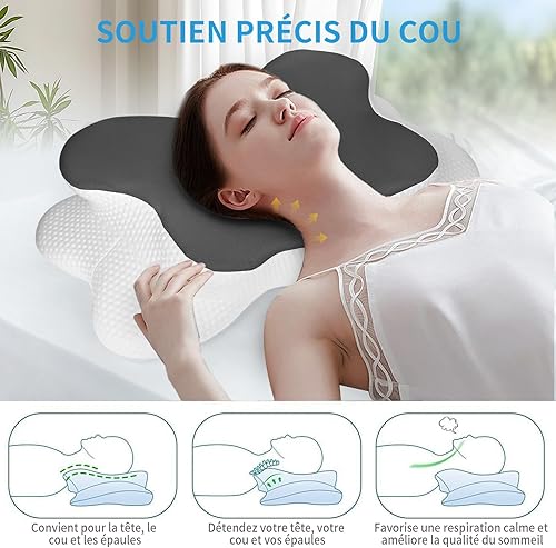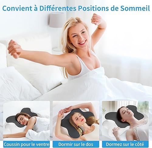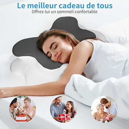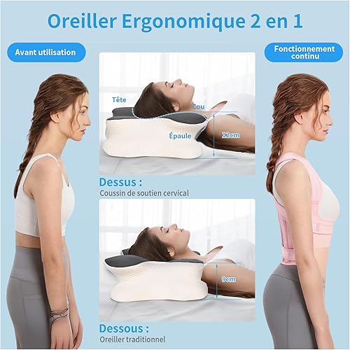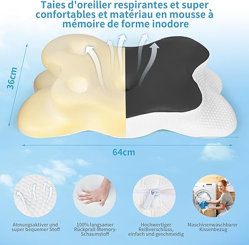 Gaethra Oreiller Ergonomique Cervical pour Soulager les Douleurs de Nuque et Épaules, Oreiller Memoire Forme Adapté aux Dormeurs Côté/Dos/Ventre, Oreiller Anti Ronflement Thérapeutique - 64×36×12/9 cm