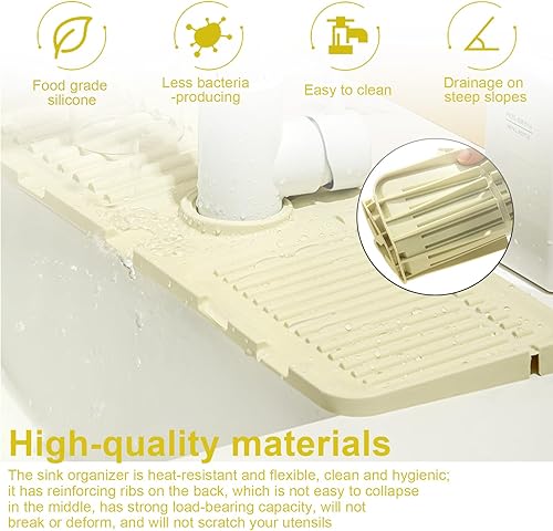HERKINDNESS Tapis de Robinet pour Évier de Cuisine, Tapis Robinet Evier Cuisine, Protection Robinet Tapis Egouttage en Silicone Pliable, pour Cuisine et Salle de Bain
