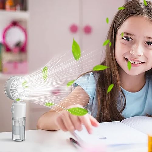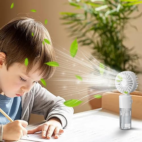 2 en 1 Mini Ventilateur Portable Rechargeable Silencieux avec Brumisateur 4 Vitesses,Vente Flash Conception Pliable à 180° Ventilateur de pulvérisation pour la Maison, le Bureau, les Voyages