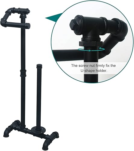HouseAid Support de Papier Toilette Industriel sur Pied pour Salle de Bain, Support Rustique en Fer avec réserve, Style Vintage, Noir Mat