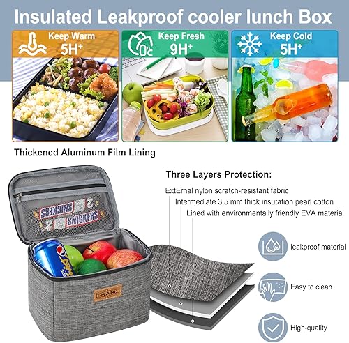 E-MANIS 4L Sacs isothermes,Mini Sac Repas Portable Multi-usages Lunch Box Bag pour Femmes Hommes Enfants,Gris