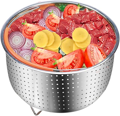 Rainnao Panier à Vapeur en Acier Inoxydable avec Poignée en Silicon, Légumes Cuit Vapeur Accessoires Cookeo pour Autocuiseur Compatible avec Plupart des Autocuiseurs pour Légumes et des Aliments