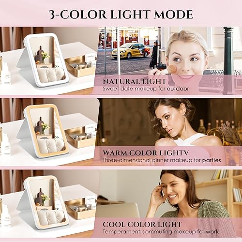 GlasFlength Miroir de Maquillage, Miroir LED avec 3 Couleurs Mirror Cosmétique LED de Table Écran Tactile USB Rechargeble Mirror Maquillage Pliable Portable pour Coiffeuse Voyage (Blanc)