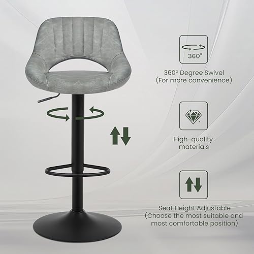 EUGAD Tabouret de Bar Chaise de Bar Lot de 4,Tabouret de Cuisine avec Similicuir Assise et métal Pieds,Anthracite, 0666BY-4