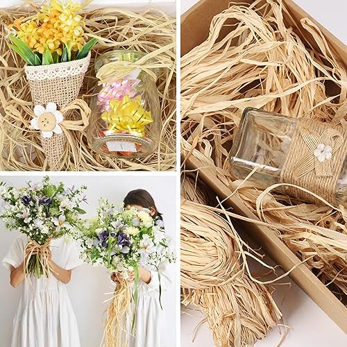 6 Pièces Raphia Naturel de 300g Rafia en Naturelle Rafia Naturel Bobine Raphia Jardin Raphia Naturel Rafia, Raphia pour Emballage Cadeau, Bouquets de Fleuriste, Décoration, Bricolage (6x50g)