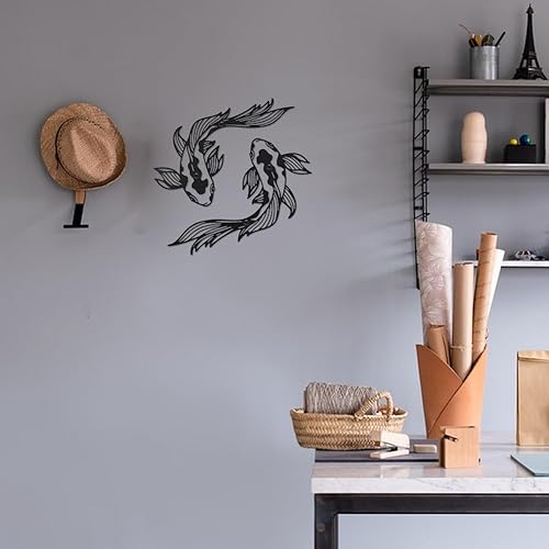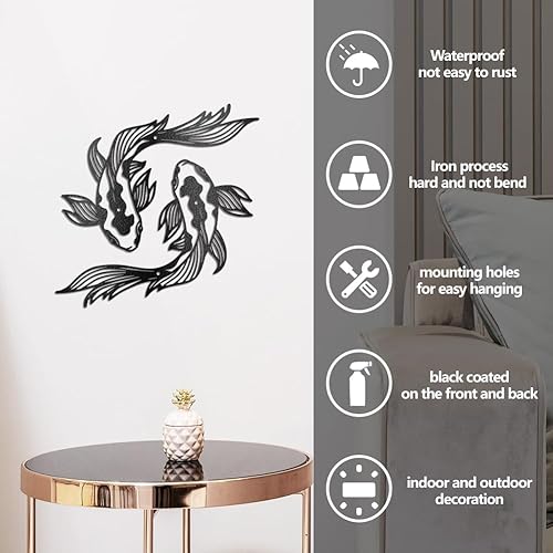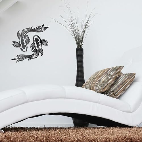 WADORN Décoration Murale en Métal Koi, Sculpture Murale Représentant un Poisson Koi Style Feng Shui Décoration Murale Minimaliste pour Balcon Jardin Cour Intérieur Ou Extérieur, 30x30cm