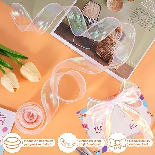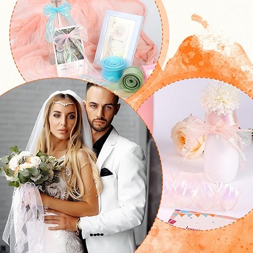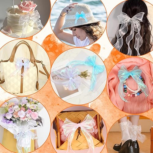 Lot de 6 rouleaux de ruban en organza - 4 cm x 9 m - Transparent - À paillettes - Pour emballage cadeau, bouquet, bricolage (6 couleurs)