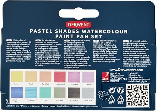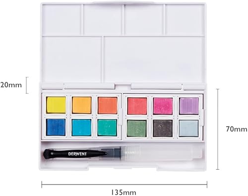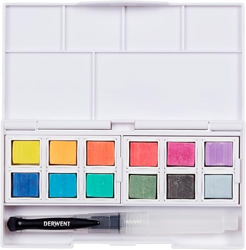 Derwent Pastel Shades - Palette de Peintures Aquarelles avec 12 Demi-Godets de Peinture, Idéale pour la Peinture style Gouache, Qualité Professionnelle, Format Voyage, 2306247