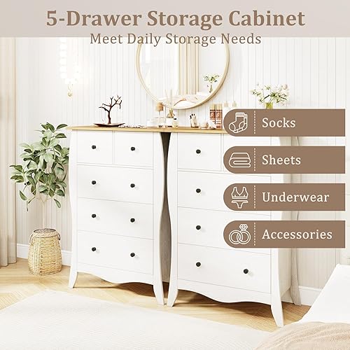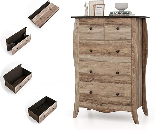 KOMFOTTEU Commode avec 5 Tiroirs de 2 Tailles, Armoire Chambre en Tissu & Bois, Meuble Rangement Dispositif Anti-basculement, pour Salon, Bureau, 67,5 x 38,5 x 97 cm (Gris)