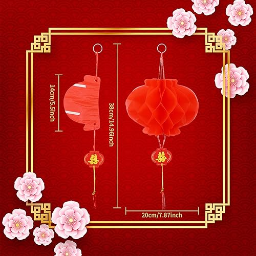 Mudder 20 Pièces 7,9 Pouces Lanternes Chinoises en Papier Rouge Lanternes Chinoises 2022 Décoratives Suspendues Décors Suspendues Festival Petites Décorations de Lanternes Chinoises pour Nouvel An