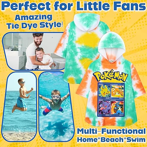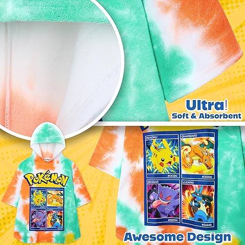 Pokémon Poncho Serviette de Plage Enfant et Ado Peignoir de Bain Enfant à Capuche Pikachu Serviette de Bain Piscine Douche Été