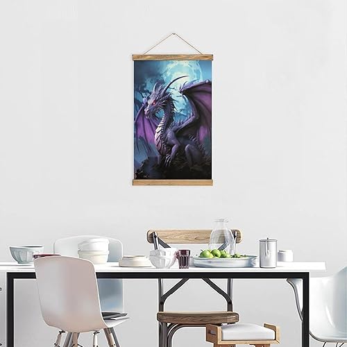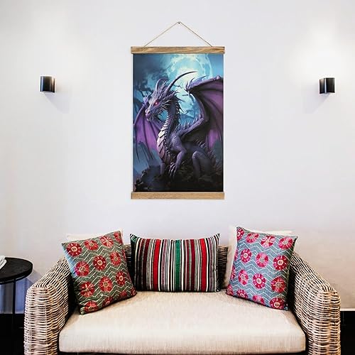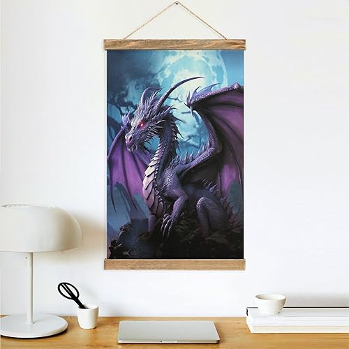 HJKBCV Peinture à suspendre en lin, motif dragon violet, lune violette, tapisserie murale à suspendre moderne, décoration murale, peinture vintage à suspendre pour chambre à coucher, salon