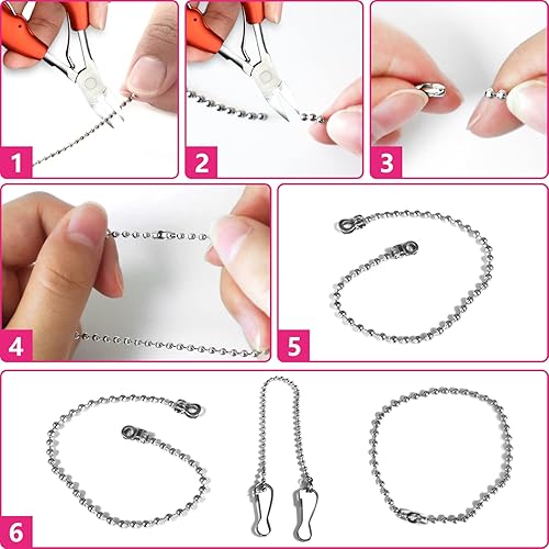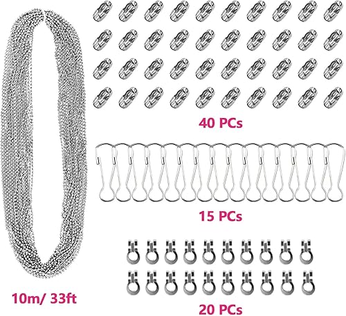 TEEUCNY Chaîne de Boule, Chaîne de Boule Acier Inoxydable 2.4mm, 10M Chaîne à Billes, Chaîne d'Extension Perlée, Chaîne à Rouleaux Perlée 75PCs Connecteurs (3 Modèles) pour Pendentif DIY Collier