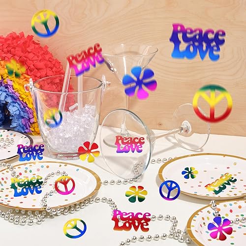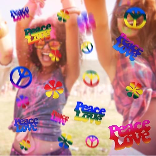 BETESSIN 100Pcs Confettis Table Rétro Motif Peace Love Signe de Paix Fleurs de Marguerite Décoration Table Hippie Groovy des Années 60 70