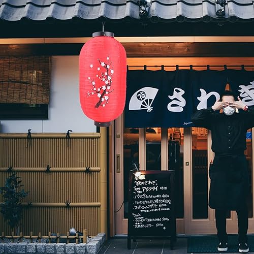 FuMeiJiaJiaJu 10 Pouces Lanterne Japonaise Lanterne Suspendue Décorative en Tissu Imperméable Lanterne Rouge Chinoise Lampe Lanterne Décorations pour Restaurant Bar Magasin (2PCS Rouge)