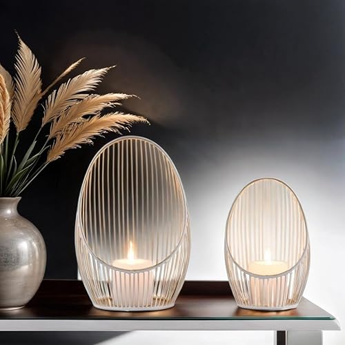 Marrakech Lot de 2 photophores décoratifs bohème esthétiques en fil métallique 28 et 23 cm Grand noir et doré | Photophore palmiers comme décoration de jardin, salon, table | Bougeoir exquis