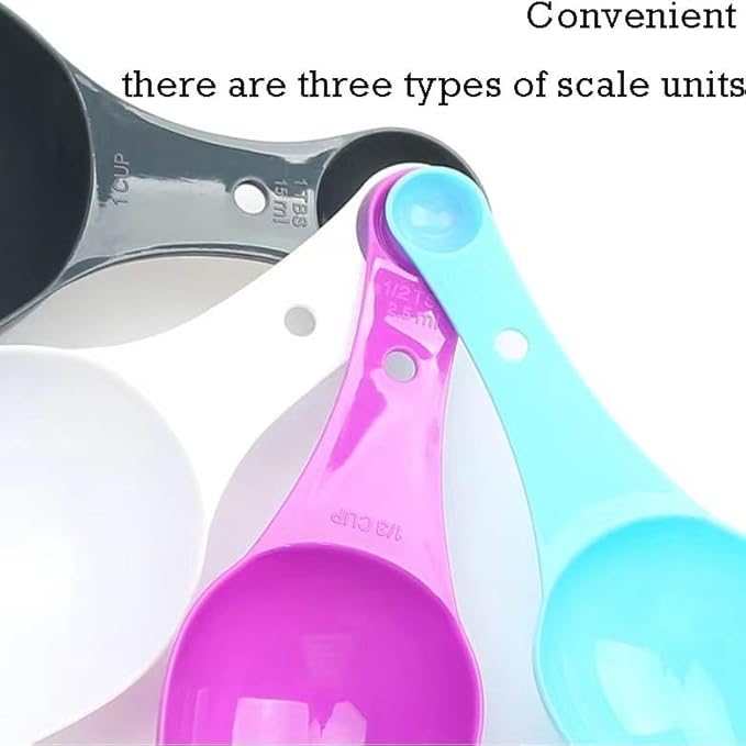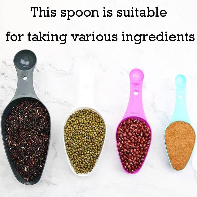 Ensemble de cuillères à mesurer, double face, convient à la plupart des pots d'épices de cuisine pour la cuisson et la cuisson, noir, violet, bleu, blanc, set de 4 avec crochet de rangement.