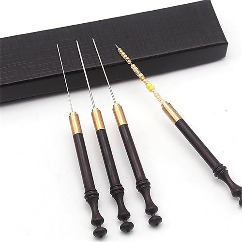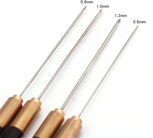 Aiguille à crochet avec manche en bois pour débutant (0,6 mm + 0,8 mm + 1,0 mm + 1,2 mm) pour fil à crochet/perles
