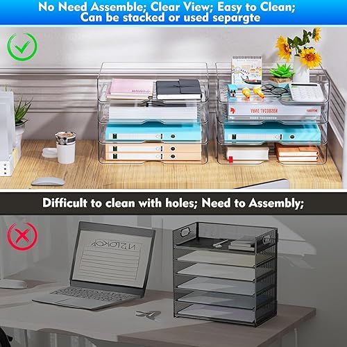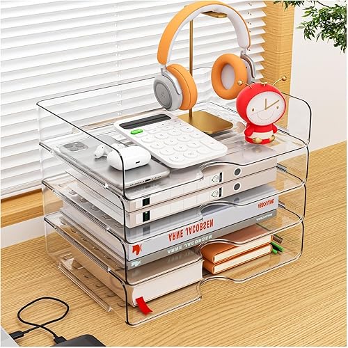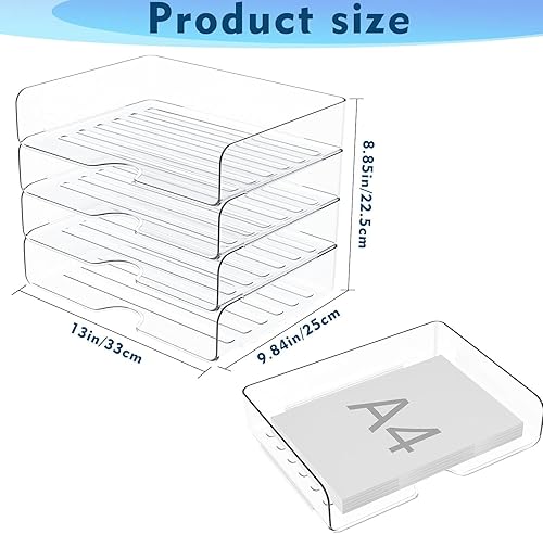 LATERN 4 Pièces Organisateur de Bac à Courrier, A4 Acrylique Corbeille à Papier Empilable Porte-Documents Transparent Organiseur de Bureau pour Livres Notes Papier Maison Bureau École Organiser