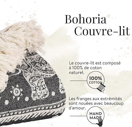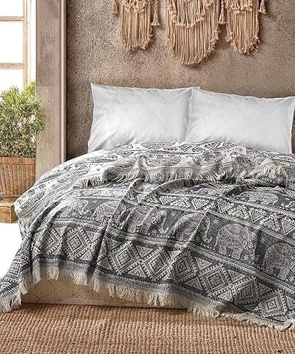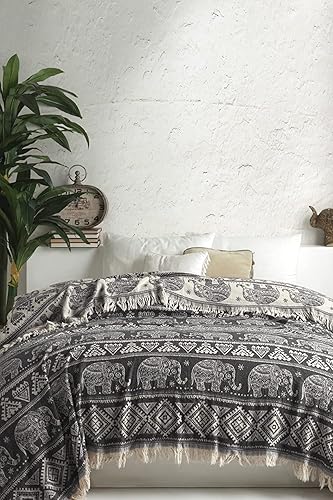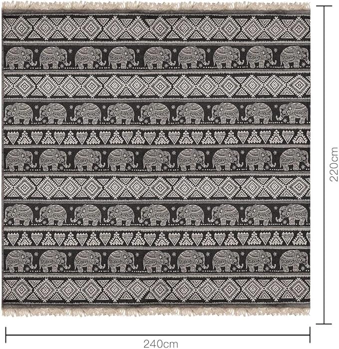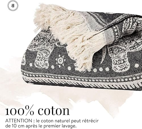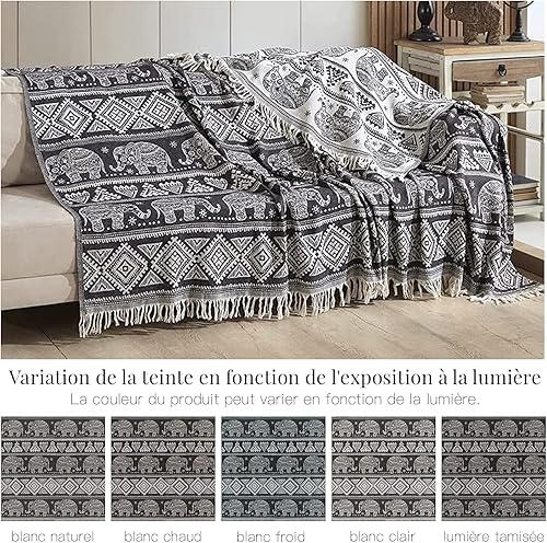 Bohoria® Couvre-lit haut de gamme Bali, Couverture réversible, Couverture de canapé avec motif, Extra large 220 x 240 cm (Motif éléphant)