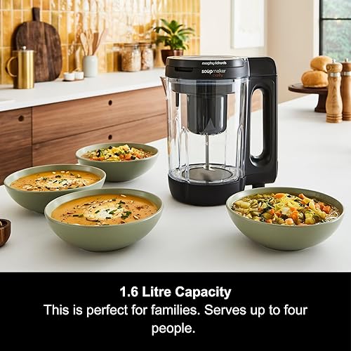 Morphy Richards Machine à soupe Clarity de 1,6 L, contrôle des portions, 9 réglages caractéristiques, technologie de réponse intelligente, garde au chaud, machine à soupe et smoothie, blanc et noir,