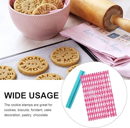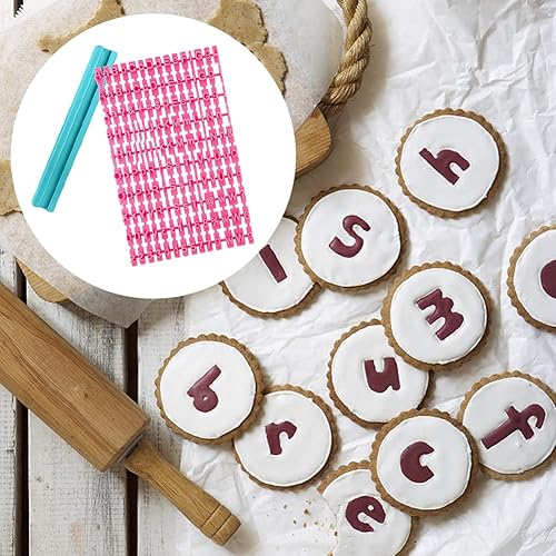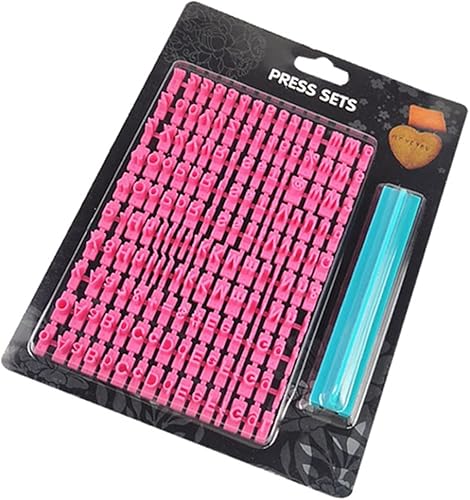 Lot de 150 Moule Alphabet Chiffre Pâtisserie,Tampons à Biscuits l'alphabet, avec Lettres minuscules et majuscules, emporte-pièces Timbres ponctuation Tampon gaufrer pour créer des Messages(Rose)