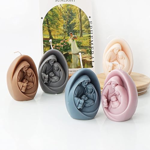 Xidmold Moule à bougie en silicone Sainte Famille Jesus Mary Joseph Moule en silicone pour bougies à la cire de soja, savon, résine époxy, artisanat, figurine religieuse, décoration