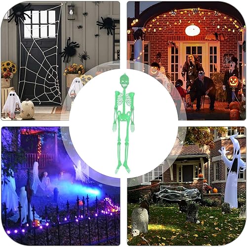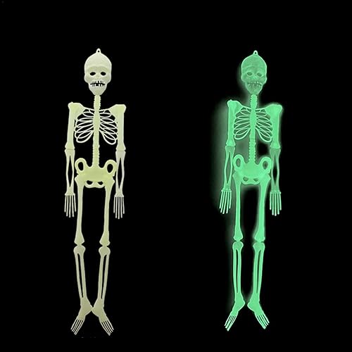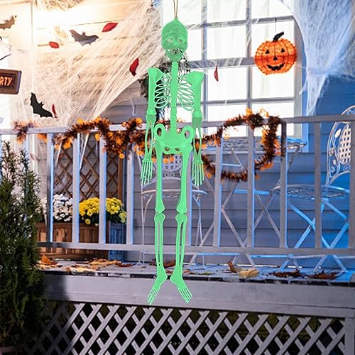 Nuyhgtr Décoration d'Halloween effrayante à suspendre, squelette d'Halloween phosphorescent, décoration murale d'Halloween, figurines articulées pour porte, fenêtre, mur