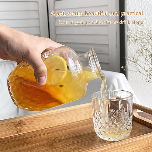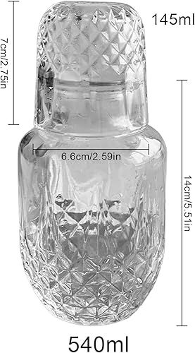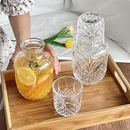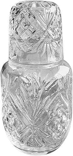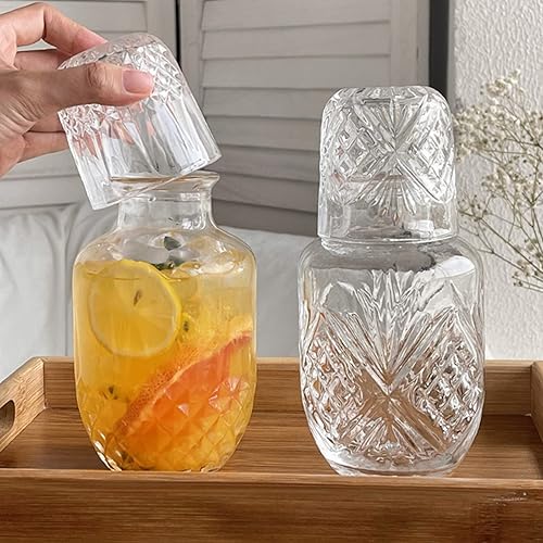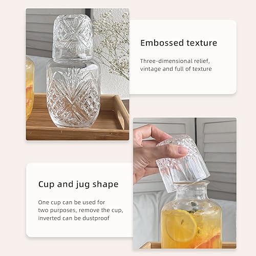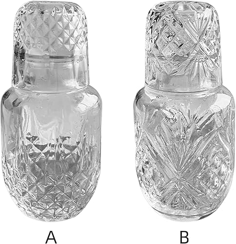Carafe à Eau de Chevet avec Tasse en Verre, Lot de 2 Carafes à Eau de Chevet Vintage avec Gobelet, Carafe à Eau en Verre Cristal, Carafe à Eau de Nuit, Pichet Distributeur pour Salle de Bain,(B)