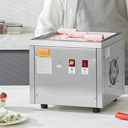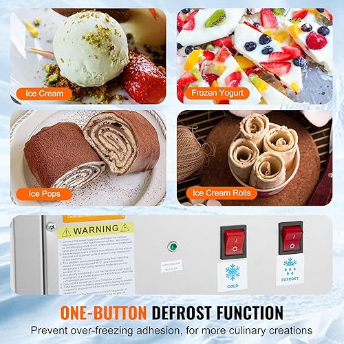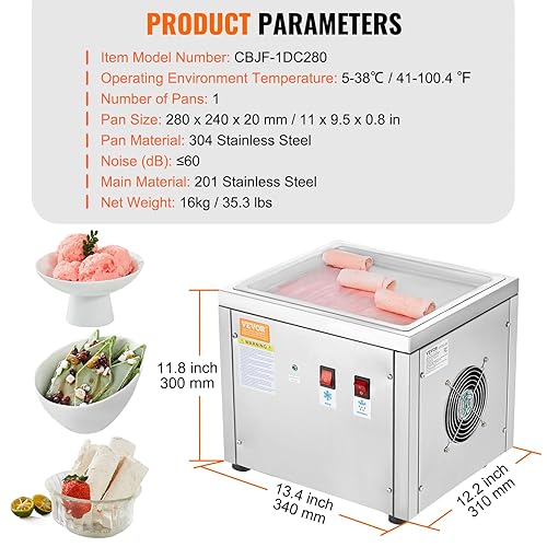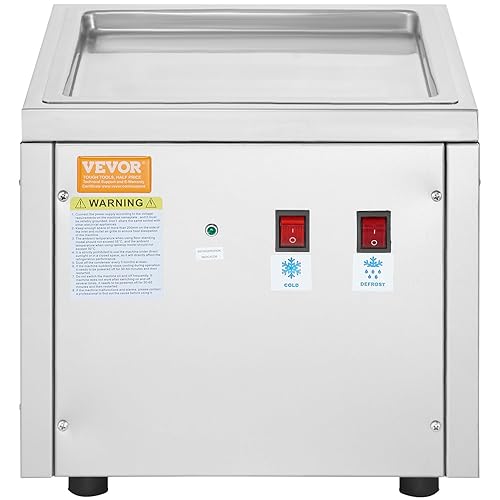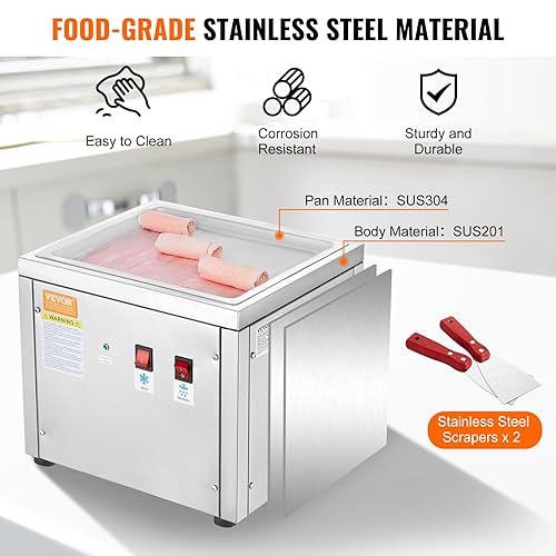 VEVOR Machine à Glace Roulée 28x24x2 cm, Plancha à Glace Roulée en Inox Alimentaire, Machine à Rouler la Glace Commerciale, avec Compresseur et 2 Grattoirs, pour Bars Cafés Boutiques de Desserts
