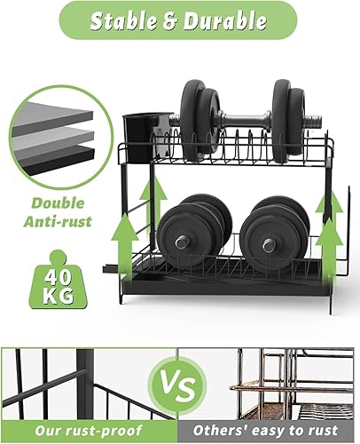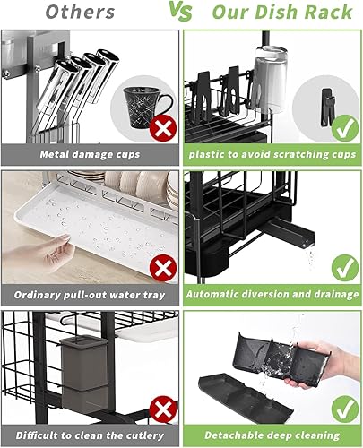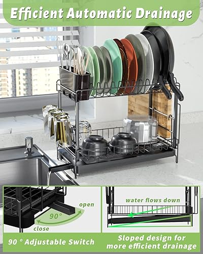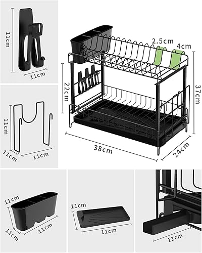 TONGKTAI Égouttoir à Vaisselle, Egouttoir à 2 Niveaux en Acier Inoxydable Antirouille avec bac D'égouttement pour Comptoir de Cuisine ou Evier, Noir