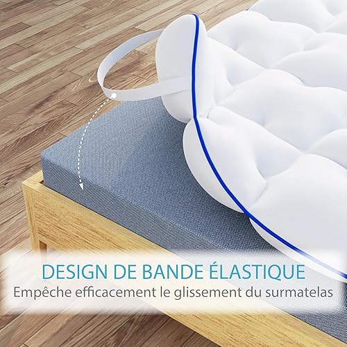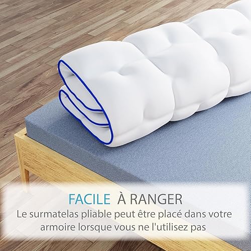 CASABEL Surmatelas Diamant 90 x 190 cm en Microfibre - Liseré Bleu - Confort Optimal - Moelleux, Anti-Acarien, Respirant - pour Matelas 1 Place Adulte et Enfant, Clic Clac, BZ