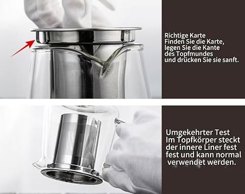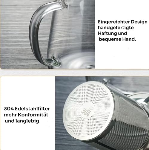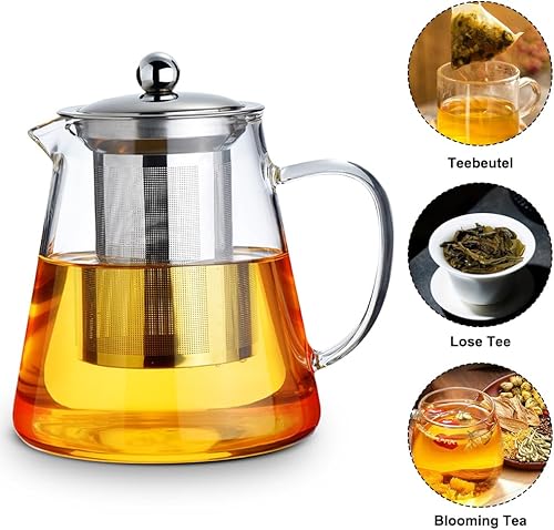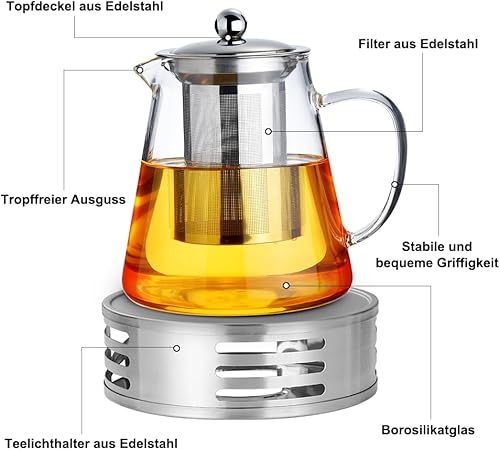 CEWROM Théière en Verre Borosilicate avec Infuseur et Réchaud - Service à Thé pour 4 Personnes - 1,3 L - Transparent