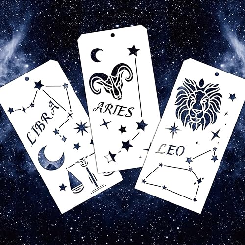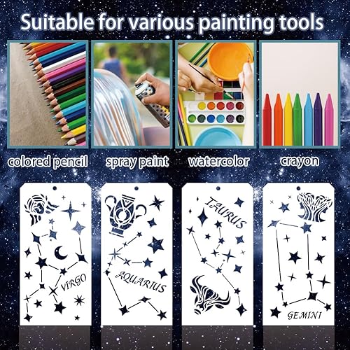 GOMAKERER 12 pochoir Décoratif D'Étoile pour la Peinture 12 Styles Pochoirs Étoile et Lune Pochoirs Réutilisables Constellation du Zodiaque Étoile Pochoirs de Peinture pour Peinture Sur Meubles Décor