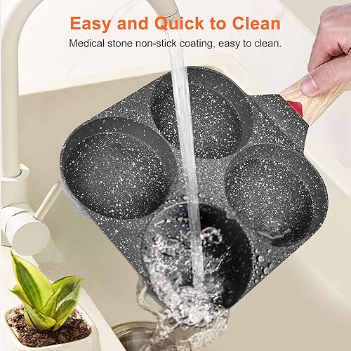Rhitchy Poele a Crepe à 4 Moules: Poêle Pancakes Antiadhésive pour Hamburger Oeuf Frit, pour Cuisinière à Induction Gaz et Électrique en Céramique