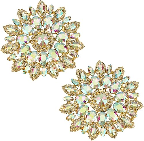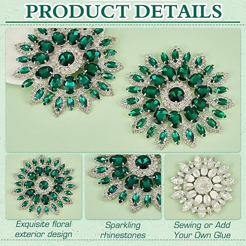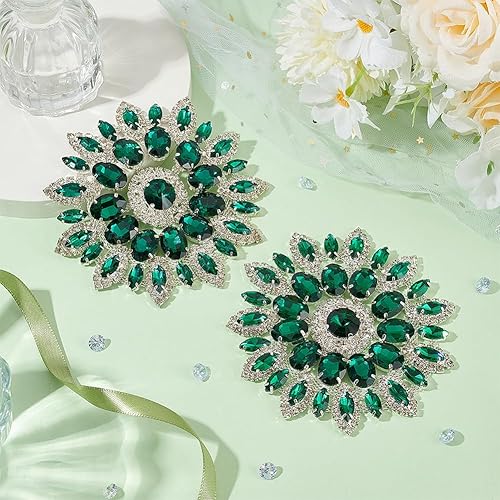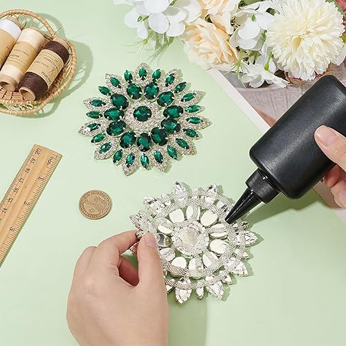 FINGERINSPIRE 2Pcs Strass en Forme de Fleur 11.2cm Vert D'Eau Dos Plat Patchs Perlés Embellissements en Cristal à Coudre sur les Appliques pour Broches de Mariée Boutons Décoration de Vêtements