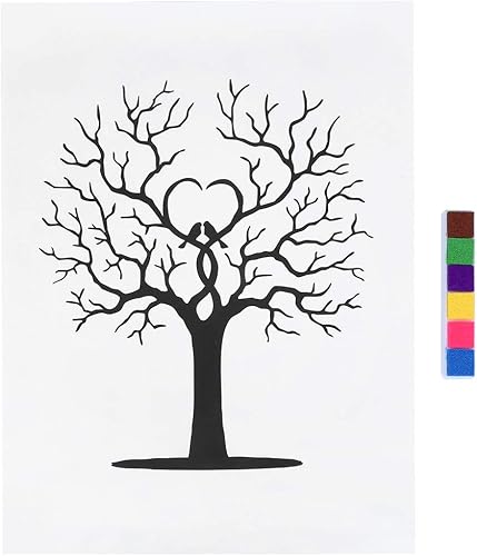Ejoyous Livre d'or de Signature de Toile d'arbre D'empreintes Digitales de Mariage de Bricolage avec l'affiche de Signature d'invité d'encre de 6 Couleurs pour des Anniversaires de