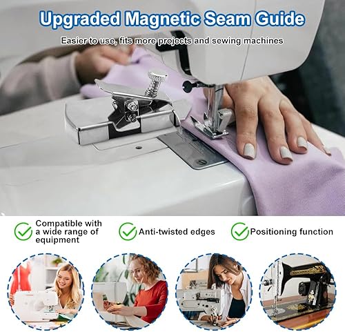 3 Pièces Guide de Couture Magnétique Acier Inoxydable, Magnetic Seam Guide Multifonctionnel, Accessoire de Couture Guide Couture Aimanté pour Machine à Coudre, Guide Magnétique Accessoires à Couture
