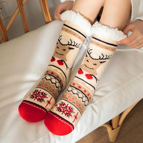 ZJILIXIA Noël Chaussettes,Chaussettes De Sol Antidérapantes En Polaire,Chaussette Chaude Cadeau Noel Adulte,Chaussette Polaire Femme Homme,Chaussettes Chaud Antidérapantes,Cadeau De Noël,Taille 35-42