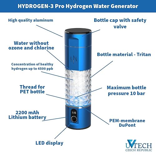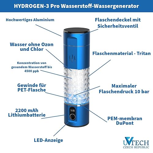Hydrogen-3 Pro Générateur d'eau hydrogène d'origine 250 ml Membrane en PEM (Bleu)