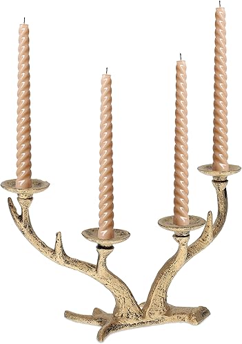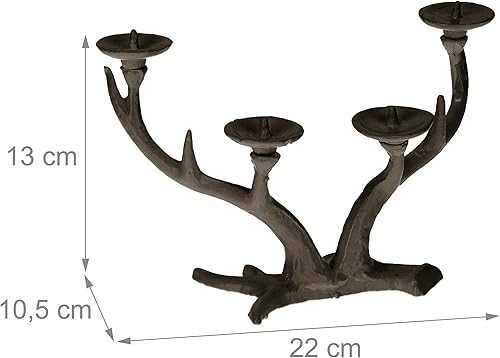 Relaxdays Chandelier en Bois de cerf, candélabre chandelle Ø 4 cm, Porte-Bougie Vintage en Fonte, Quatre Bras, Blanc